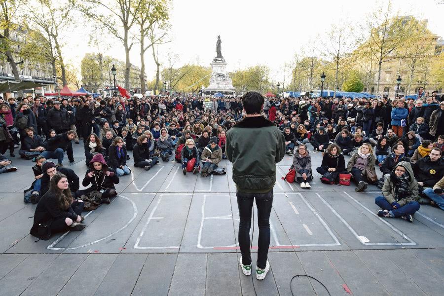 La métaphore est simple mais limpide : alors qu’ils essaient de changer le monde à grands coups de mots, la vie « normale » se poursuit place de la République. Les voitures tournent en klaxonnant, les piétons font leur vie. Le point commun des conclusions des (trop) nombreuses commissions qui se sont tenues sur la place de la République ? Elles n’ont abouti sur rien de concret. Peu de propositions d’actions. Juste des discours de surface sur ce qu’il faut changer dans le monde et pourquoi il faut le changer. Le premier jour, c’est normal. Le cinquantième, beaucoup moins. Il n’y a pas que la fatigue qui marque les visages : il y a aussi cette impression si contrariante d’avoir fait du surplace.